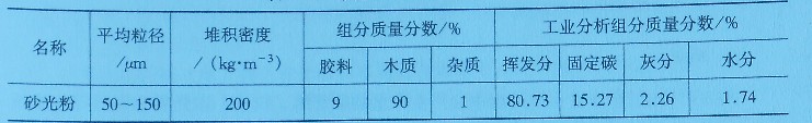 (1)砂光粉的組成。砂光粉組成與工業分析,如表7-1所示。